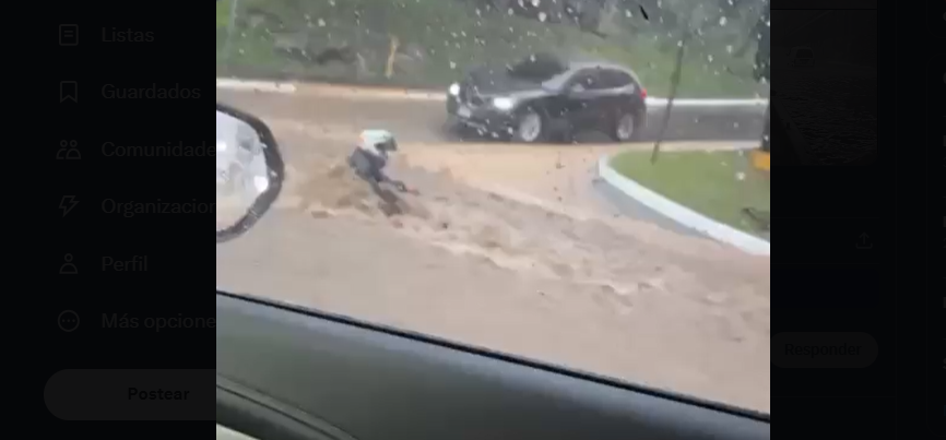 Videos compartidos en redes sociales evidenciaron la intensidad de las lluvias. Algunos motoristas fueron arrastrados por el agua, mientras vecinos y conductores intentaban ayudar.