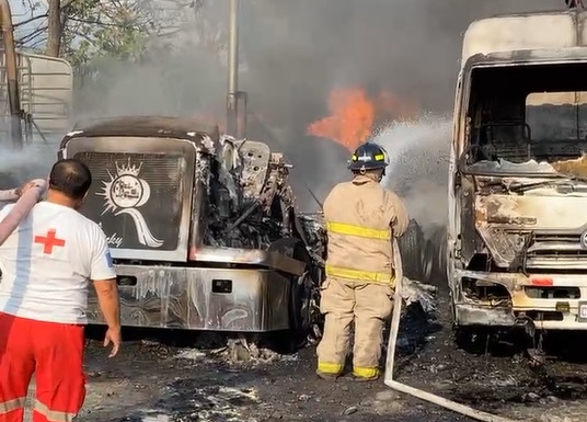 Cuatro camiones se incendian en predio en Retalhuleu