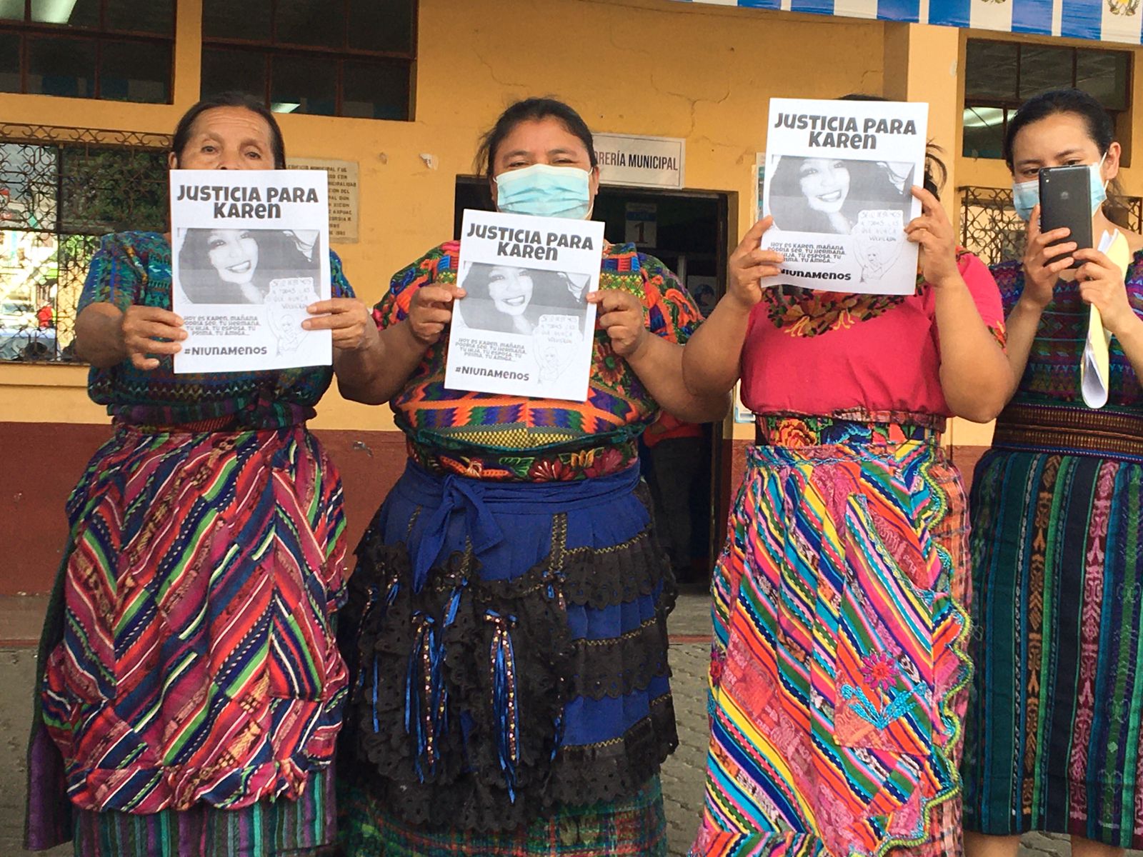 Al concluir la marcha en la que se gritaban consignas en contra de la violencia contra la mujer, pancartas y fotografías de Karen fueron colocadas en las paredes de los edificios de la Policía Nacional Civil (PNC), Municipalidad y Ministerio Público (MP).