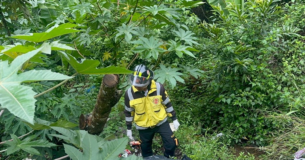 El cuerpo de un mujer fue hallado en la ruta entre San José Pinula y Palencia. (Foto Prensa Libre: Bomberos Voluntarios)