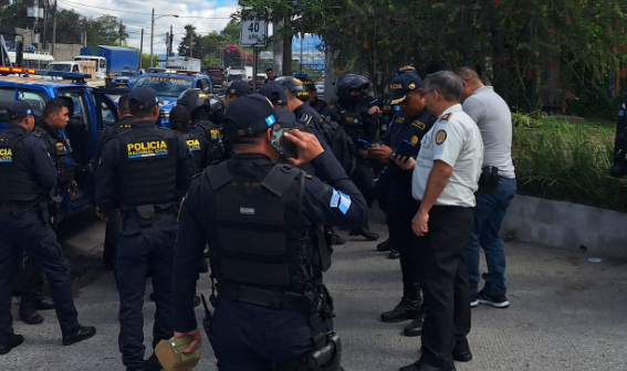 Posteriormente, dos agentes lo sujetaron y lo subieron a un autopatrulla de la PNC.