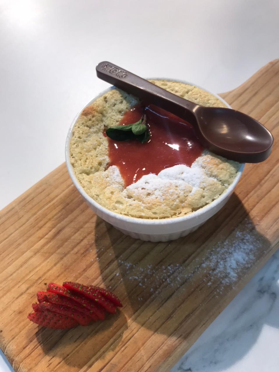 • Por otro lado, batir las claras hasta llevarlas al punto de nieve, incorporar las mismas a la preparación anterior de forma envolvente para no perder aire; luego colocar la mezcla en moldes previamente engrasados y cocinar por 15 min a 180 grados centígrados o hasta que la parte de arriba quede dorada.