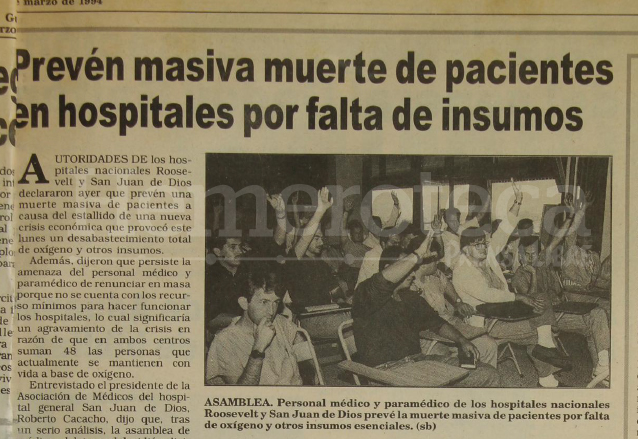 En marzo de 1994 ambos hospitales continuaban en crisis y declaraban que se preveía una «muerte masiva de pacientes» ya que se encontraban desabastecidos de oxígeno y otros insumos necesarios.