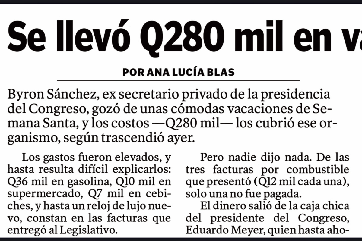 Los gastos fueron desglosados de la siguente manera: Q10 mil en compra de abarrotes en supermercado, Q7 mil en compra de cebiches, otros gastos… y también adquirió un reloj de lujo.