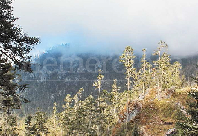En el sendero, de un kilómetro de distancia, se divisa gran variedad de flora y fauna. El camino se da entre pinabetes, cipreses y pinos. El musgo, con tonalidades que van del verde al amarillo, pasando por anaranjado, le da un colorido especial a los troncos. El escarpado terreno es bastante húmedo, ya que, literalmente, el lugar se mantiene entre las nubes.