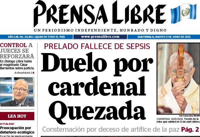 El 19 de junio del 2001, cuando monsen?or Rodolfo Quezada Torun?o fue elegido como decimoctavo Arzobispo de Guatemala, ya era conocido por su trabajo en el proceso de paz y a favor de los pobres, pero capto? la atencio?n de los sectores de la sociedad civil y los medios de comunicacio?n por sus fuertes cri?ticas.