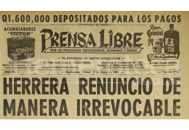 Titular de Prensa Libre del 17/06/1960. (Foto: Hemeroteca PL)