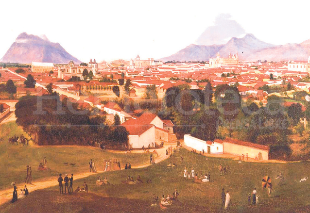 La ciudad de Guatemala vista desde el Cerrito del Carmen. Pintado por Augusto de Succa en 1870. (Foto: Hemeroteca PL)