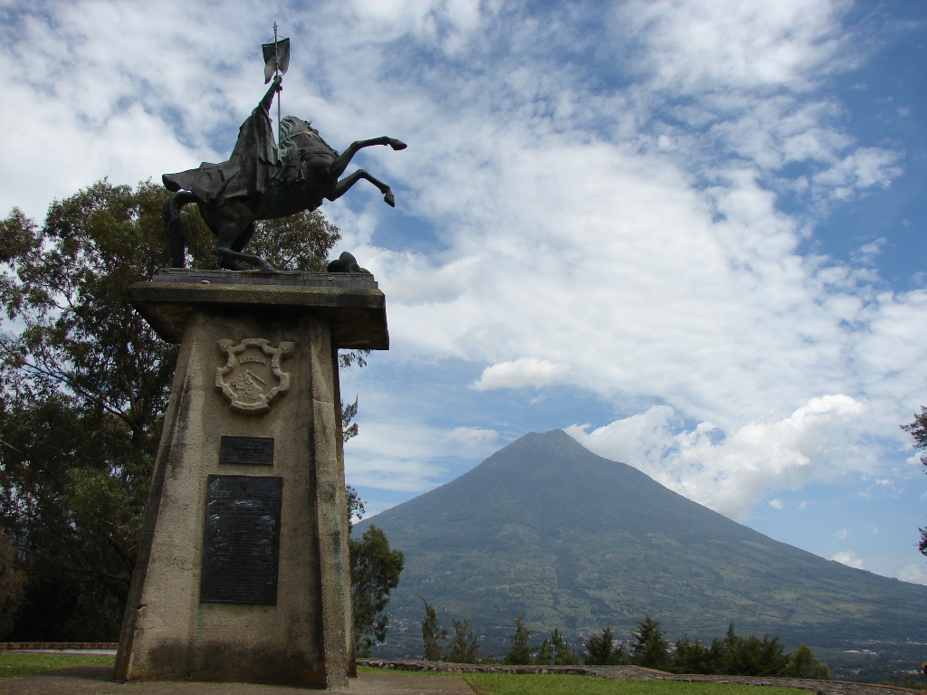 - 1527: Alvarado empieza a buscar el lugar conveniente para establecer la ciudad de manera permanente, que cumpliera requerimientos de defensa militar ante ataques eventual. Llega a las faldas del volcán Juanjpú. Según el lienzo de Quauhquechollan, se elige el valle de Almolonga (Sacatepéquez), por ser el punto clave en las rutas prehispánicas de comercio, las cuales buscaban controlar los conquistadores.