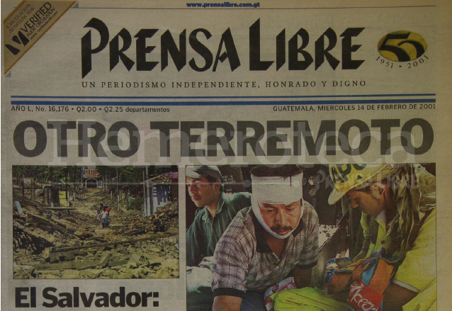 El violento terremoto tuvo su epicentro en San Pedro Nonualco, a unos 60 kms al este de San Salvador, en el central departamento de La Paz.