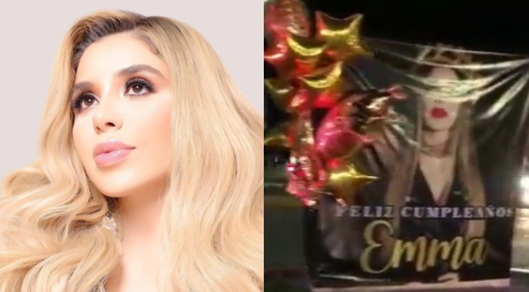 Un video difundido en redes sociales muestra a varias personas celebrando el cumpleaños de Emma Coronel con un arreglo de globos, carteles con felicitaciones y una banda de música.