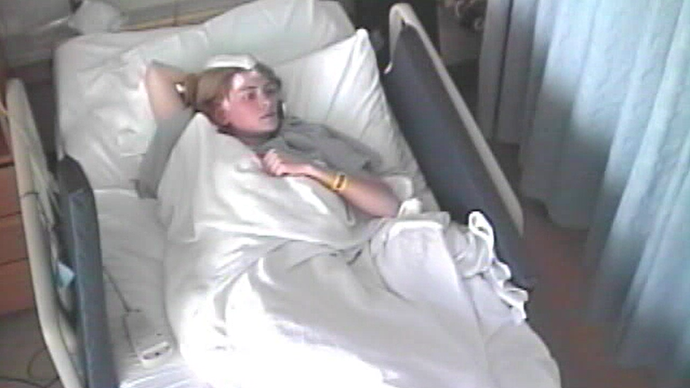 Un día durante la internación, Susannah estaba en su cama sosteniendo un teléfono celular apagado. Estaba muy agitada y sus ojos algo saltones.