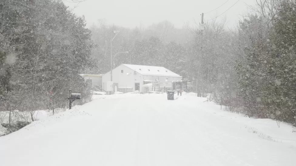 El duro invierno canadiense no parecer detener el flujo de personas que llegan por la carretera de Roxham. (ELOISE ALANNA/ BBC)