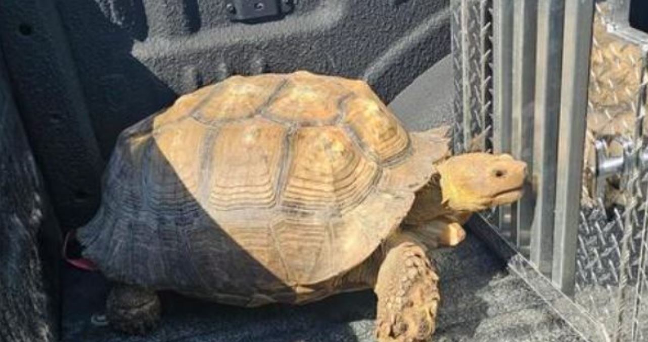 La administración de la oficina gubernamental de Parish of Ascension publicó un post en Facebook en el que narró el rescate de la tortuga africana por parte de dos policías de la oficina del sheriff.