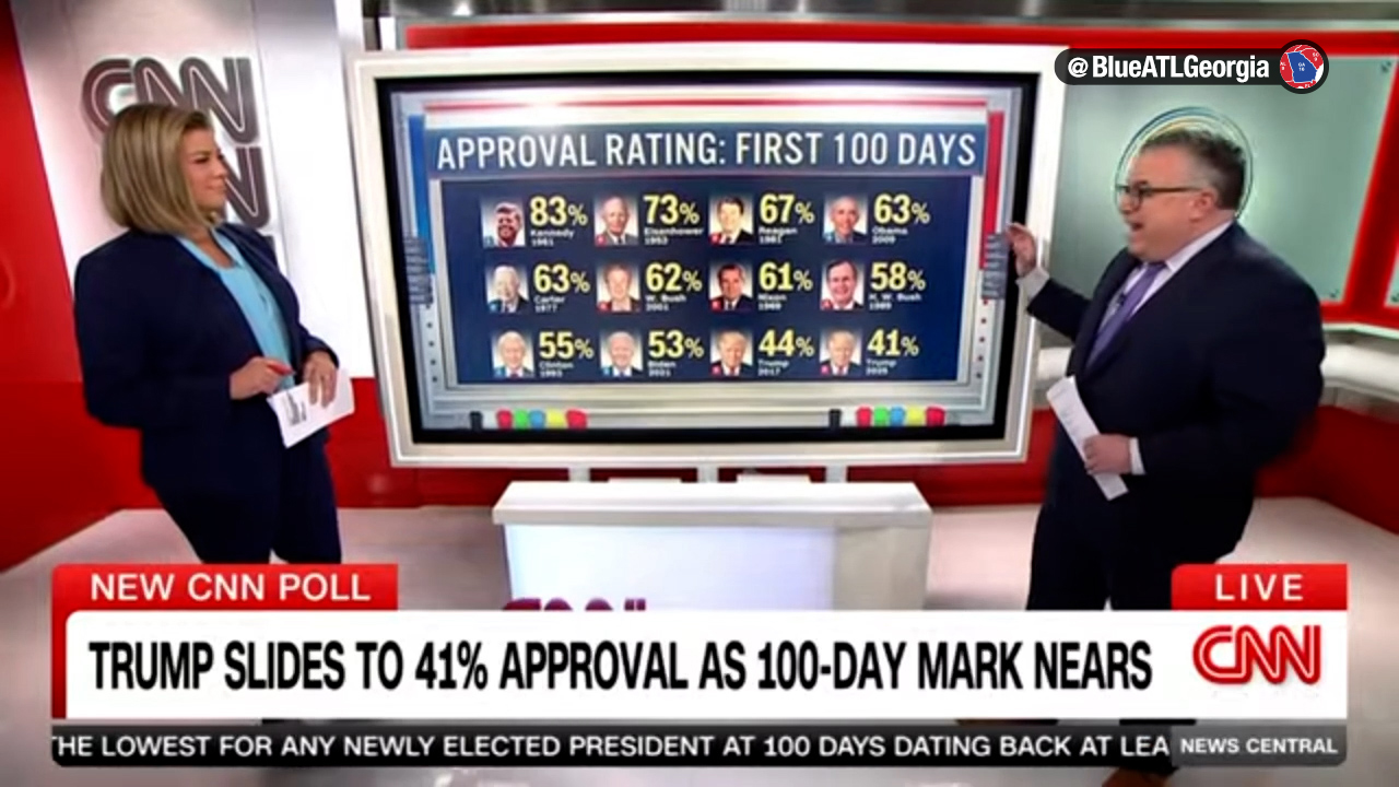 A menos de 48 horas de cumplir 100 días al frente de su segundo mandato presidencial, la popularidad de Donald Trump entre la población estadounidense ha disminuido, según un sondeo de CNN.