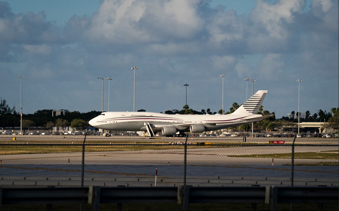 El Boeing 747-8 de Catar en el Aeropuerto Internacional de Palm Beach, Florida, después de que el presidente Trump visitó el avión en febrero. (Foto Prensa Libre: Al Drago para The New York Times)