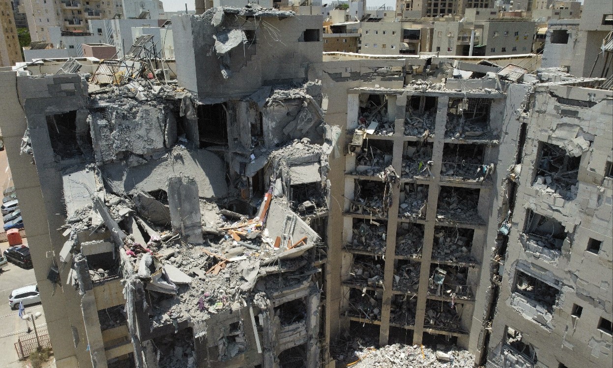 Edificios dañados en la localidad de Sheva, Israel, por los bombardeos iraníes. (Foto Prensa Libre: EFE)
