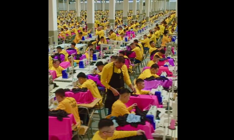 En las imágenes, se observa a cientos de presos trabajando talleres de costura y confección, en la producción de uniformes, muebles y otros productos.