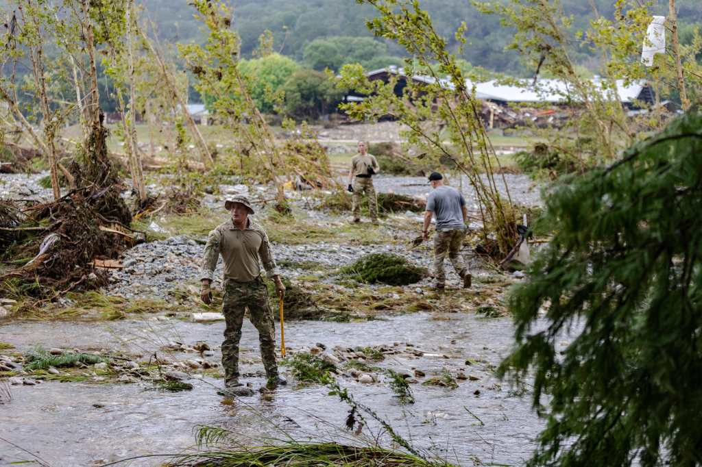 Desde la madrugada del 4 de julio, equipos de rescate y voluntarios recorren las regiones afectadas a pie, con perros, caballos, botes, vehículos todoterreno y helicópteros.
