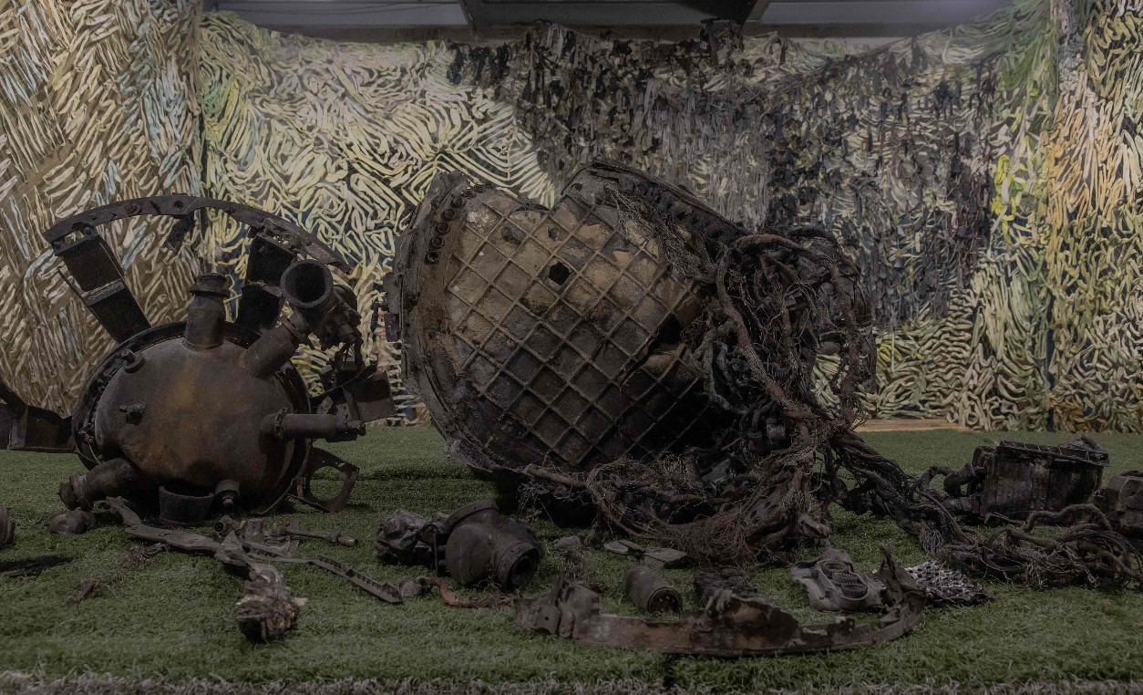 Restos de misil recogidos en el lugar de impacto en la ciudad ucraniana de Dnipro, tras el ataque ruso del 21 de noviembre. (Foto Prensa Libre: AFP)