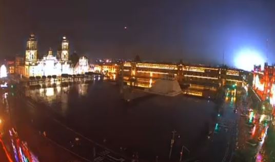 #México 🇲🇽 | Destellos a causa de la interrupción de la energía eléctrica en algunos puntos de la Ciudad de México, producto del fuerte sismo hace minutos, grabado por la webcam del Zócalo desde el Gran Hotel de #CDMX. pic.twitter.com/UeUEXa8CHx