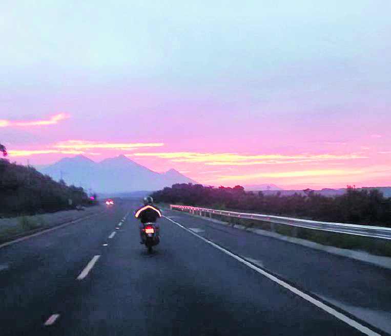 Los primeros rayos del sol tiñen de hermosos colores el cielo del sur de Guatemala, para regalarnos esta bella estampa.