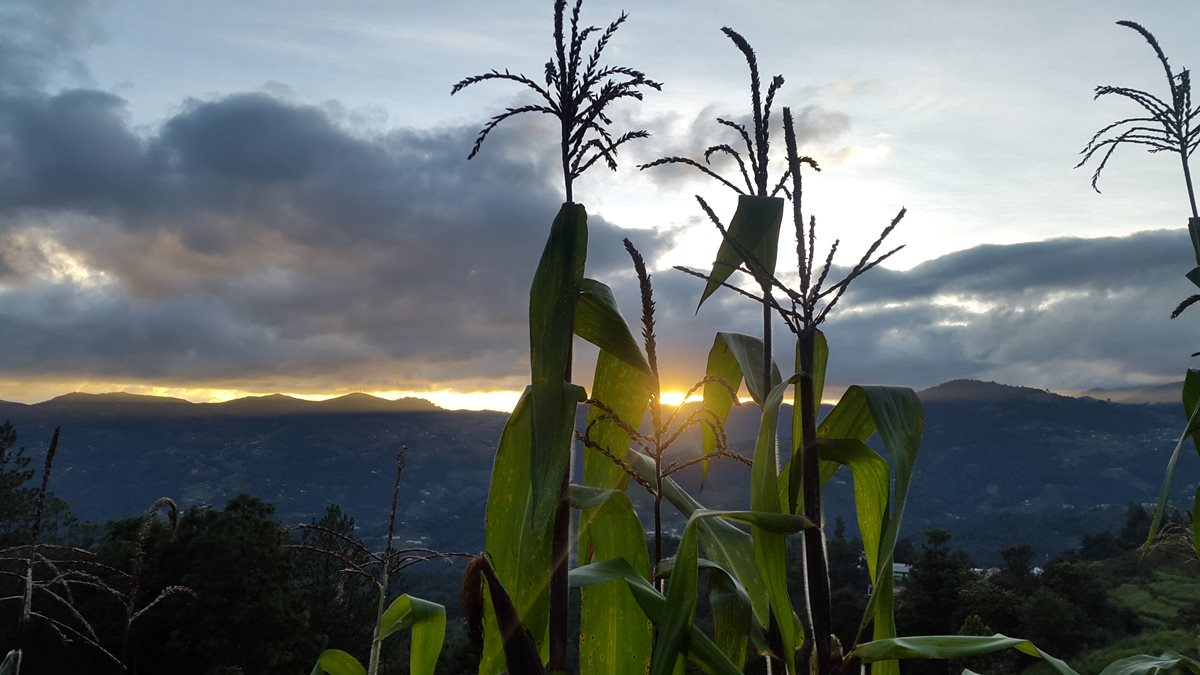 Los últimos rayos del sol se filtran entre las plantaciones que rodean a San Marcos.