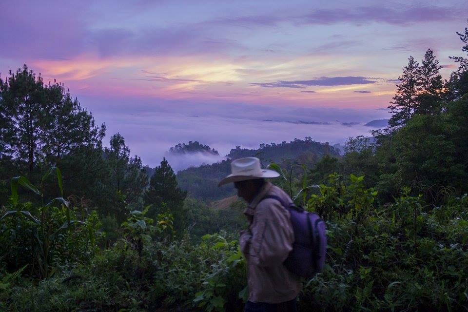Una persona observa los colores del amanecer mientras se dirige a su jornada laboral en San Juan Chamelco, Alta Verapaz.