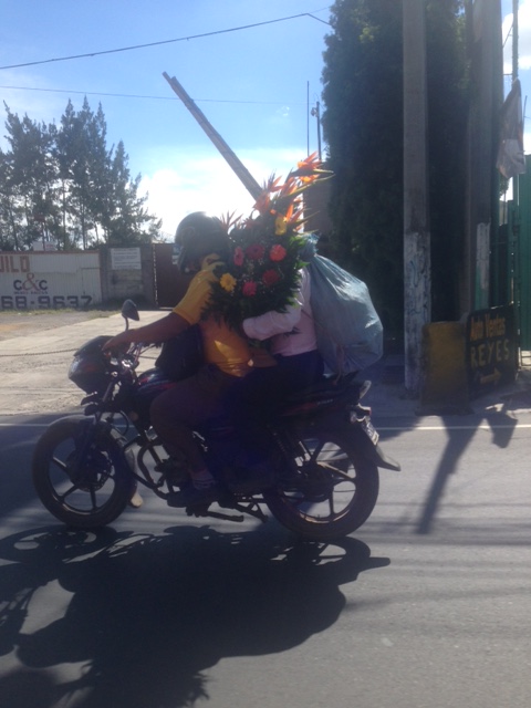 Con un arreglo de flores y, además, una bolsa, fue captada una persona que viajaba junto a un motorista.
