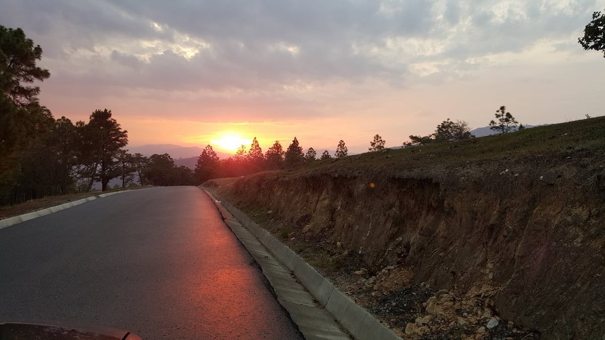 El sol iluminó de esta manera la carretera que conduce a San Miguel Ixtahuacán, San Marcos