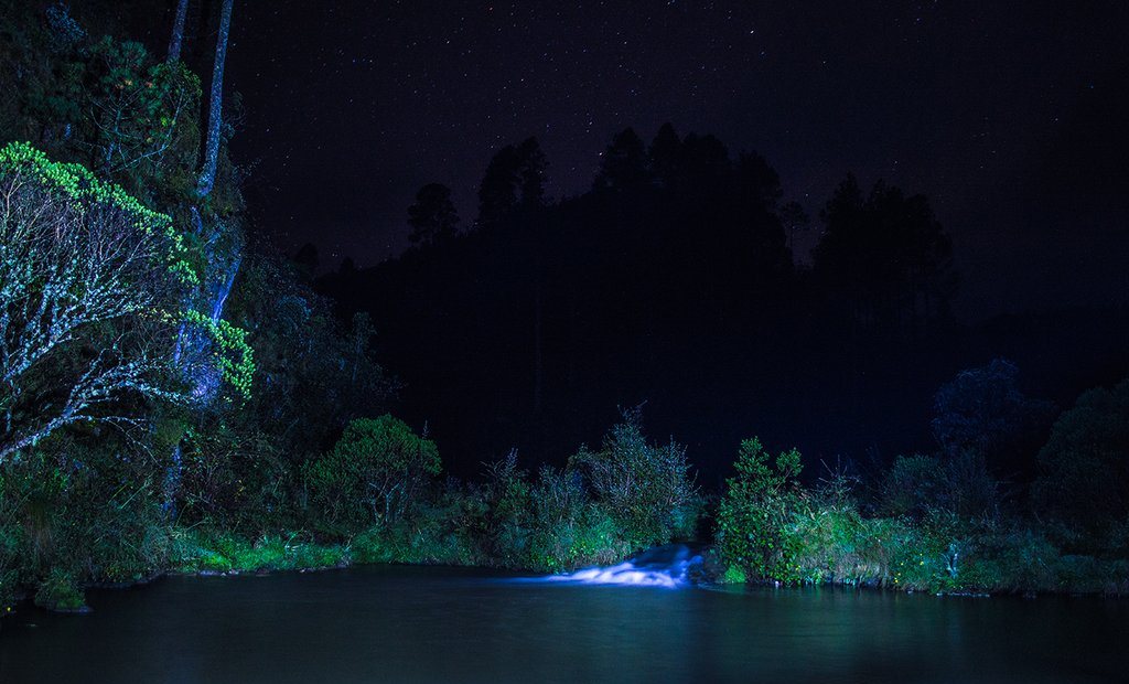 Como si fuera un mágico lugar, el bosque de Huehuetenango se llena de fantasía cuando llega la noche.