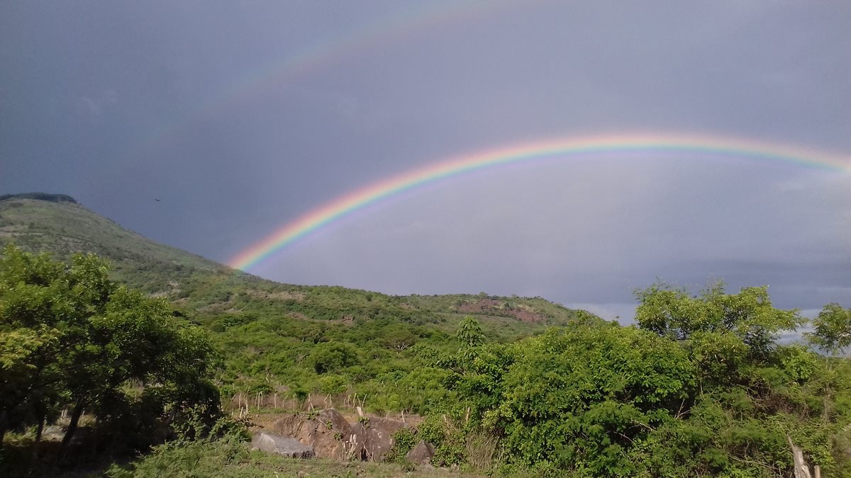 Hay regalos que no cuestan un solo centavo; por ejemplo los bellos arcoíris que obsequia el cielo luego del paso de la lluvia. Uno de ellos fue fotografiado desde las faldas del volcán Ipala, en Chiquimula. ¿Qué le parece esta hermosa panorámica?