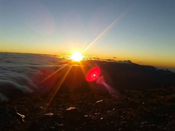 Los primeros rayos del sol fueron captados desde la cima del Volcán San Pedro, ubicado en Sololá, Aquí los visitantes pueden apreciar hermosos paisajes.