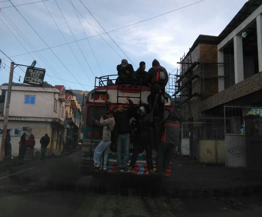 Esta foto demuestra la inseguridad que viven los pasajeros al viajar en los buses extraurbanos que van de Colomba, hacia San Martín Sacatepéquez, Quetzaltenango.