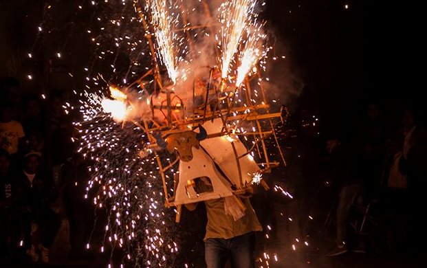 En muchas festividades de Guatemala, el torito ha entretenido a decenas por sus colores; así ocurrió durante el rezado de la Virgen del Patrocinio en Palín, Escuintla.