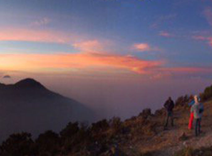 Bellos colores se pintan en el cielo de Guatemala cuando sale el sol. Esta imagen fue tomada desde la cima del volcán Santa María en Quetzaltenango.