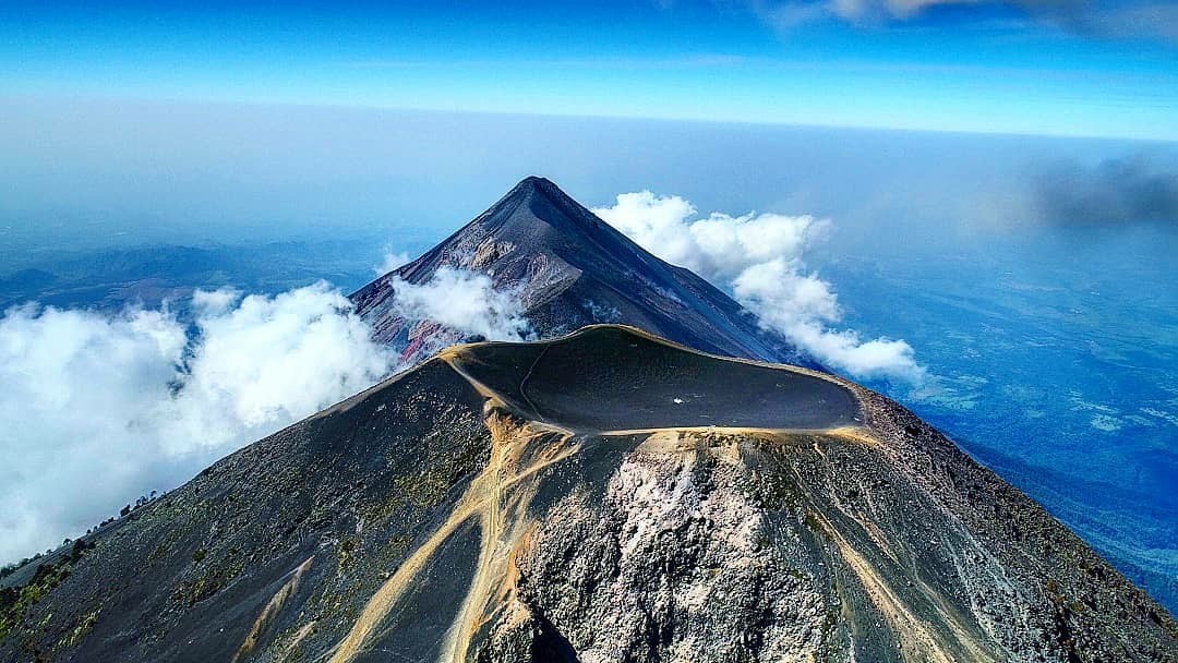 Los volcanes de Fuego y Acatenango son los protagonistas de esta majestuosa postal tomada mediante un dron por dos montañistas, emocionados por compartir las bellezas naturales del país.