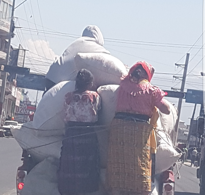 Dos mujeres viajaban en la parte trasera de un picop, “aseguradas” únicamente por una soga.