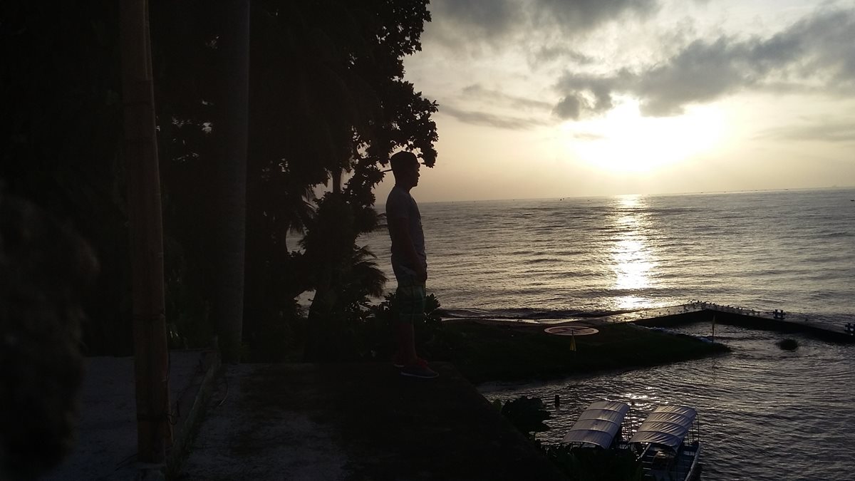 Una persona contempla un tranquilo amanecer en las playas de Lívingston, Izabal.