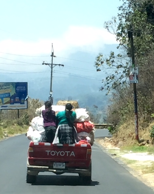 El piloto de un picop que conducía por una carretera de Huehuetenango, traslada a dos mujeres de manera peligrosa.