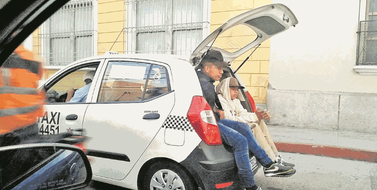 Si hay taxistas que sobrecargan las unidades, este conductor aprovechó hasta el baúl para trasladar a dos jóvenes que tuvieron una “mejor vista” del tránsito.