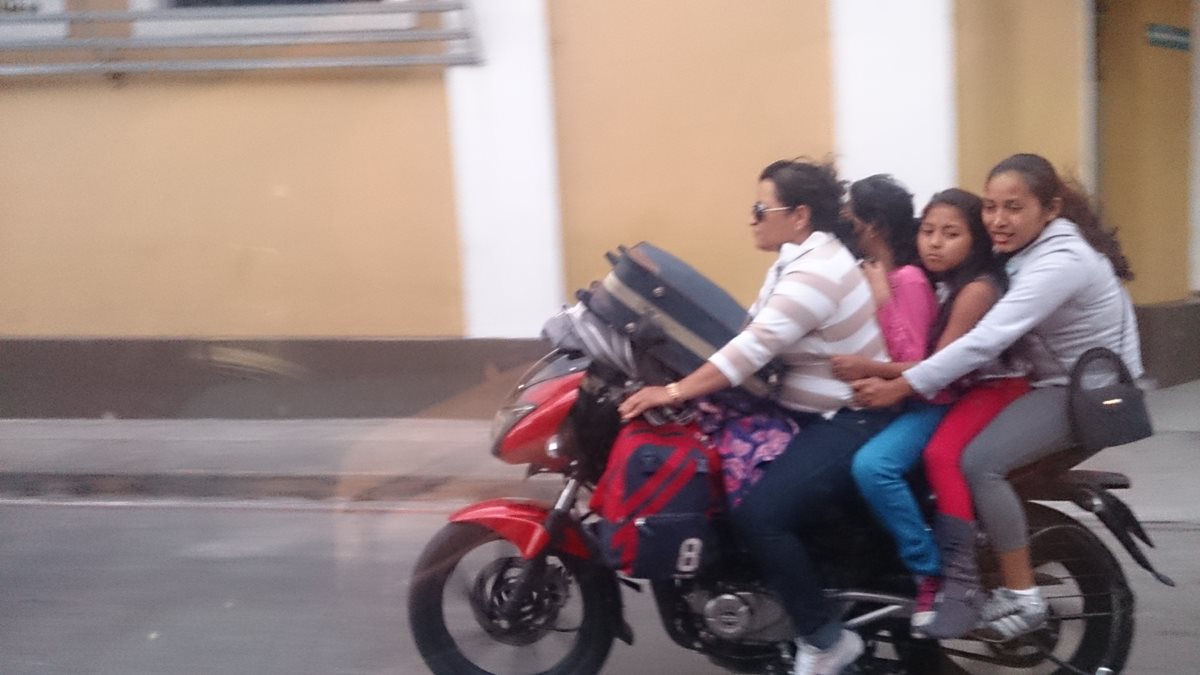 Una mujer fue captada cuando conducía una motocicleta con tres pasajeras. Por si fuera poco, también llevaba dos maletas.