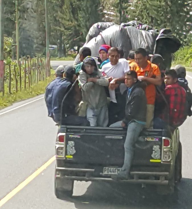 Un lector captó en la carretera que conduce a Cobán un picop que transportaba mercadería en la palangana y a varias personas que buscaron un lugar para acomodarse durante el trayecto.