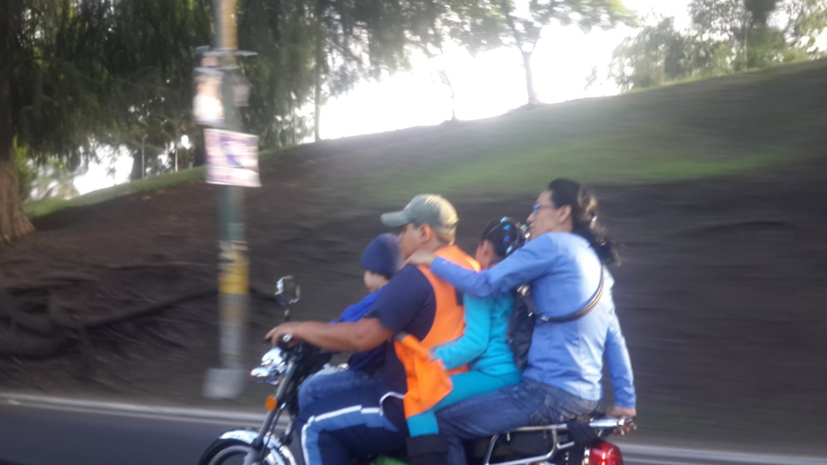 Un motorista transportaba de manera imprudente a dos niños y a una mujer, mientras se acomodaban para llegar a su destino