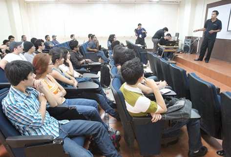 Dos estudiantes de Ingeniería de Ecuador expusieron a sus compañeros guatemaltecos sobre el proyecto, durante la actividad efectuada ayer en la Universidad de San Carlos.