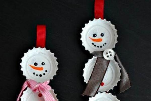 5. Añadir otros pequeños detalles para darles un toque más realista a estos muñequitos, se puede hacer pequeñas bufandas con cintas, sombreritos, aplicar de botones o usar lo que se tenga a mano y con algo de imaginación decorar estos simpáticos personajes hechos de tapas de botellas.
