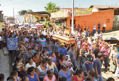 Con muestras de dolor y repudio por el crimen, cientos de pobladores despidieron a Eulogio Pérez Batz, concejal primero de San Pablo Jocopilas, Suchitepéquez, en el cementerio de la aldea Madre Mía, de donde era originario.