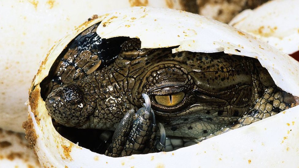 Huevo de cocodrilo eclosionando. En el caso del estudio, el feto casi idéntico a su madre estaba perfectamente formado pero no llegó a nacer. Getty Images