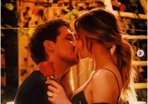 “Damas y caballeros… Belinda Peregrin Schull me acaba de hacer el hombre más afortunado del mundo”, escribió Nodal en Instagram junto a dos fotografías de ambos en las que se ve el anillo de compromiso.