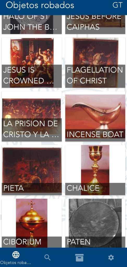 En la aplicación de la Interpol, una organización internacional de policía criminal, aparecen cientos de objetos con denuncia de robo y desaparición. Cada uno de ellos representa parte de la historia de los guatemaltecos.